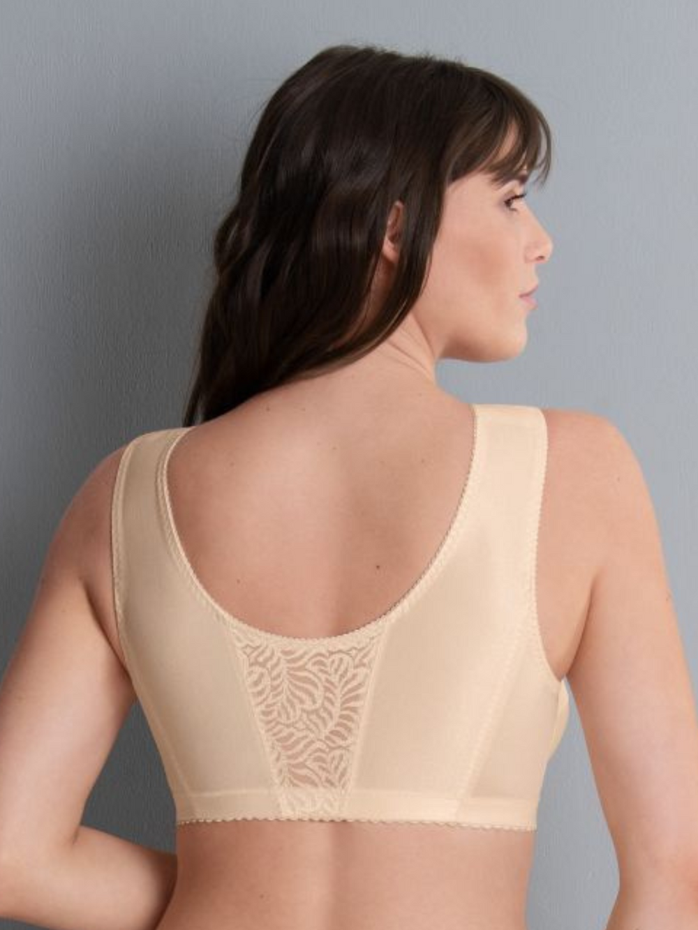 Este sujetador de alivio con cierre delantero facilita el vestir y desvestir. Los tirantes de alivio anchos y acolchados, de estabilidad transversal, no se enrollan ni se clavan en el hombro, para mayor descanso de los hombros y de la zona de la nuca. Las copas divididas en tres partes proporcionan una forma muy natural al pecho. La espalda de corte alto ofrece aún más sujeción.